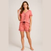 Descubra o Pijama Americano feminino Manga curta com botão e shorts, uma peça encantadora que une conforto e charme em um só conjunto. Confeccionado em viscolycra na cor salmão, este pijama é perfeito para quem valoriza a suavidade e o estilo, mesmo durante o descanso.