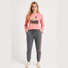 Design Atraente: A camisa em tom salmão traz a divertida escrita "There" e uma estampa de urso encantadora, enquanto a calça jogger cinza é equipada com elástico embutido, laço de amarrar e bolso lateral, garantindo praticidade.